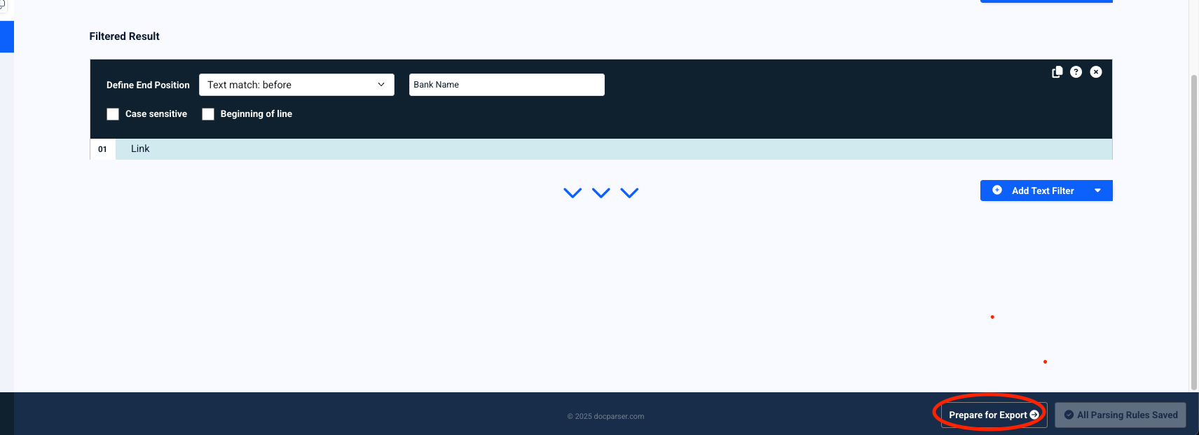 You can also requeue your documents directly after saving a parsing rule - after clicking Save Parsing Rule another button appears that says "Prepare for Export". Selecting that will automatically queue your files back for parsing as well.