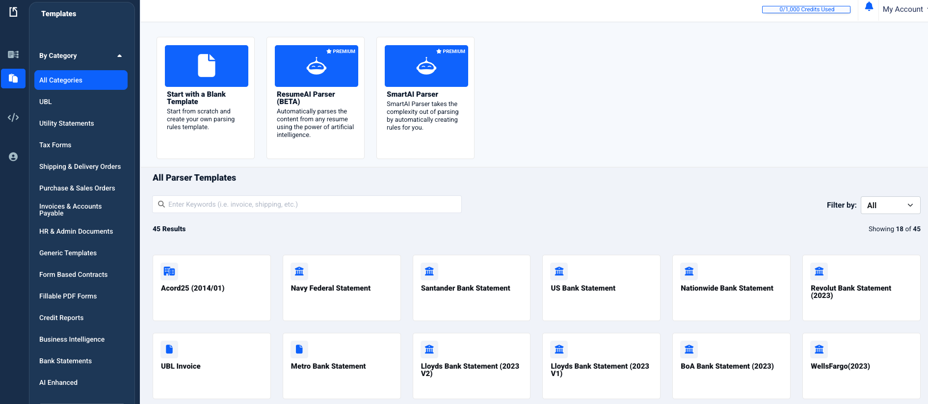 For those enabled customers, when you go to Create a Parser, you will see the Template Library. Below is an overview…