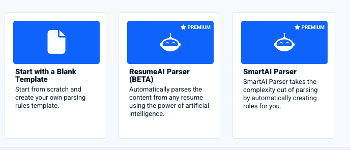 On top is an important feature to note. Clicking on the Start with a Blank Template allows you to create a custom parser that has no rules automatically created — it will be a blank slate.